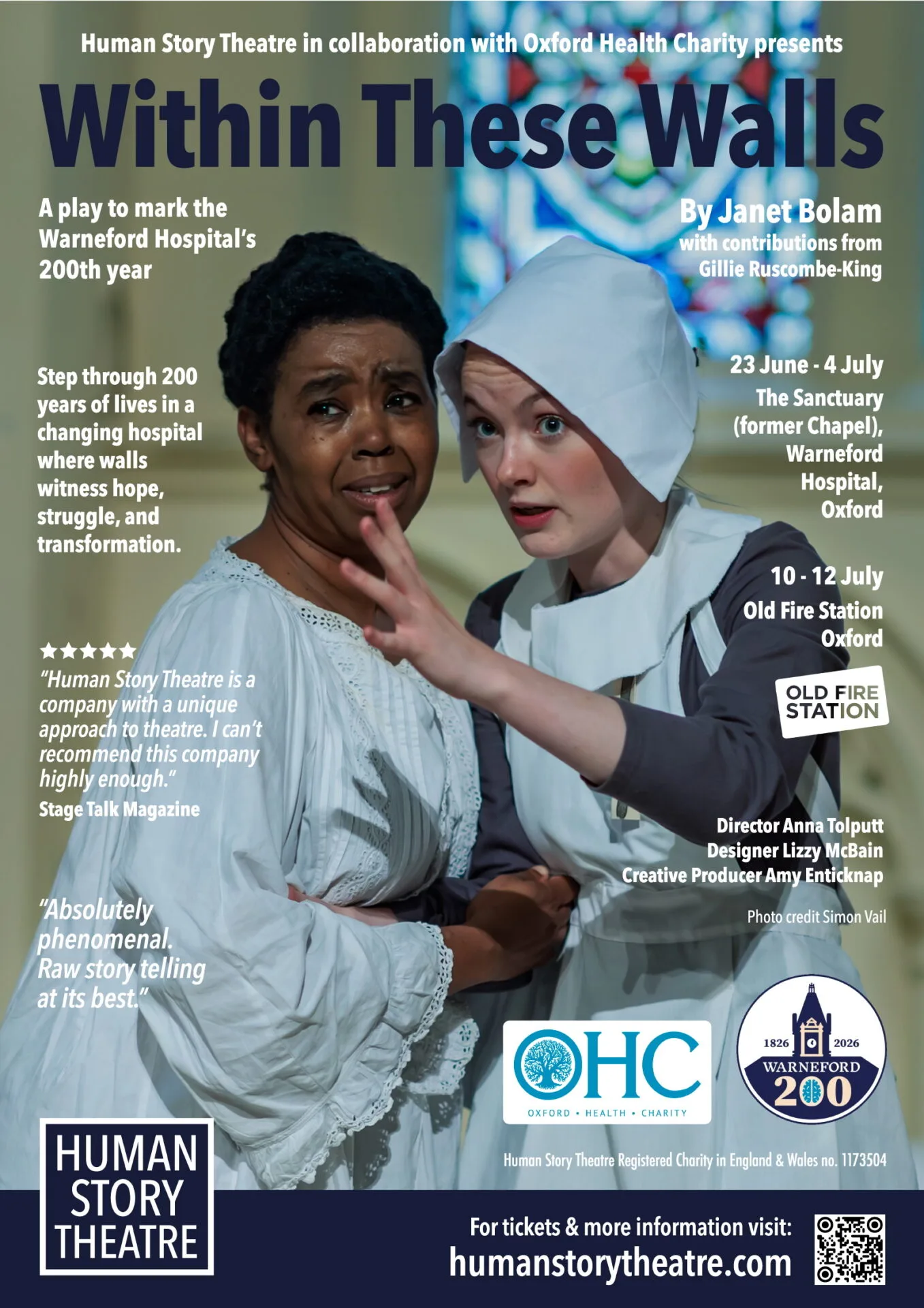Written by Janet Bolam, Within These Walls is a collaboration between Human Story Theatre and Oxford Health Charity to mark 200 years of Warneford Hospital.